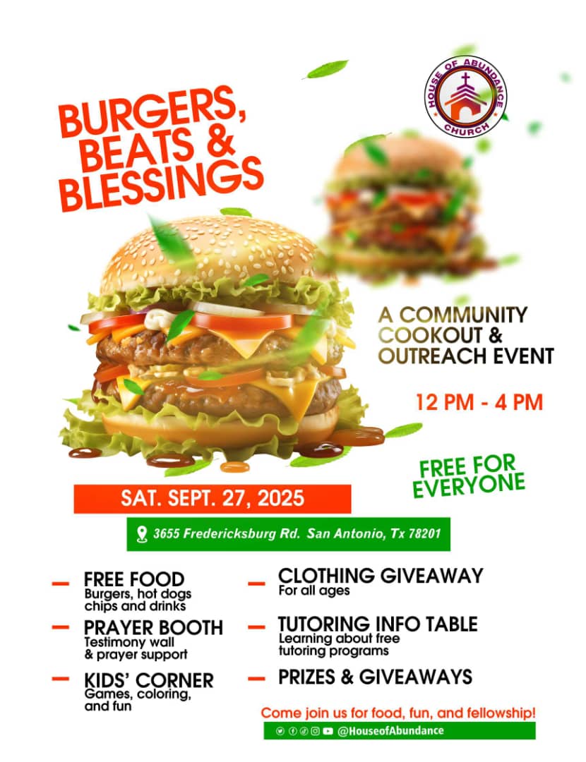 Join us for a fun-filled community cookout and outreach event — Burgers, Beats & Blessings! Come enjoy free food, uplifting music, and a family-friendly atmosphere where everyone is welcome.